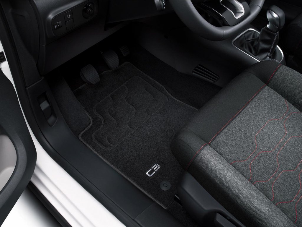 Označení vyšitým názvem modelu "C3" šedé barvy na koberci řidiče.