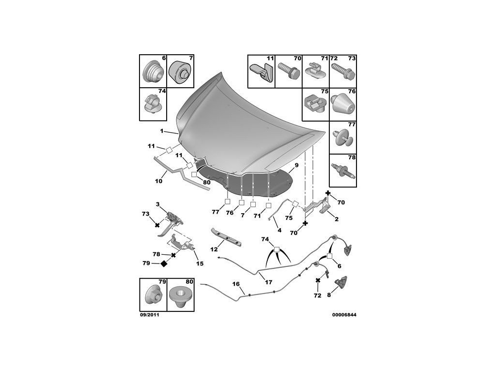 Příchytky izolace kapoty motoru 10ks, pro Citroën C2, C3, C4, C4 Picasso, Berlingo B9 (699783, 6997T2)