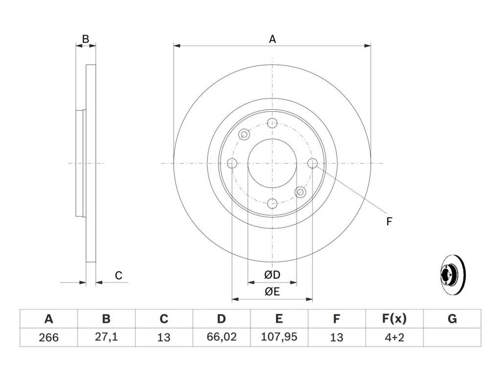 Brzdový kotouč přední Bosch pro Citroen Berlingo, C2, C-Elysee a C3 (4246R4, 0986479B51)