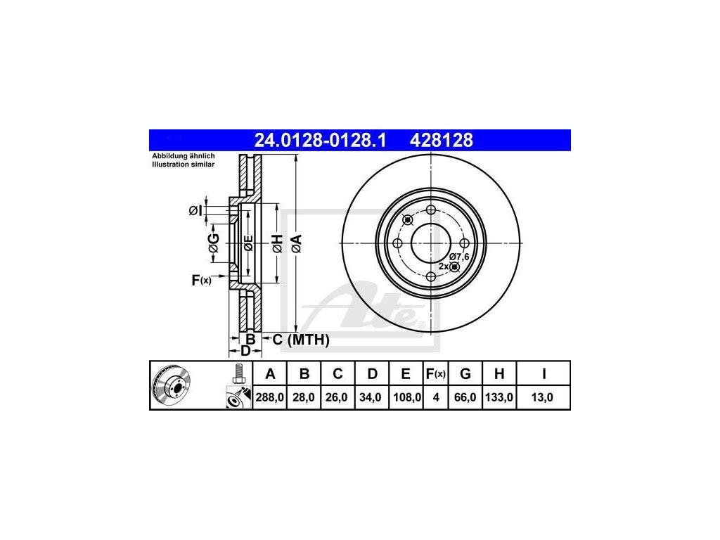 Přední brzdový kotouč ATE pro Citroen Xantia, Xantia Break, C5 a C5 Break (4246R6, 4246T8, 4246W3, 4249H1, 428128)
