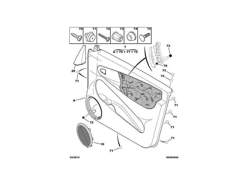 Příchytka interiérového čalounění, především obložení bočních dveří pro Citroën C2, C4 první generace, C4 Picasso, C3 první i druhé generace, C3 Pluriel, C8, Xsara Picasso, C5 první generace, Berlingo první i druhé generace a C6. U Berlinga druhé generace jsou použity na obložení pátých dveří.