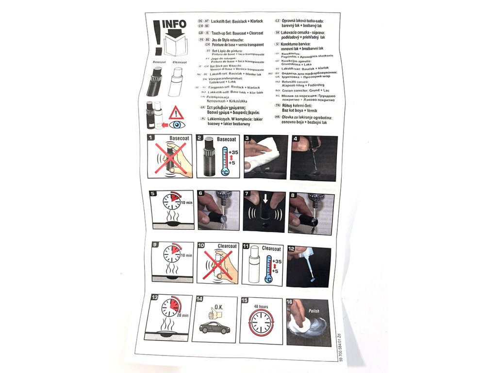 Sada opravných tužek na lak, originál Mazda. Obsahuje tužku z barvou a tužku s krycím lakem. Vhodné pro opravu i hlubokých škrábanců a ďolíků od kamínků s odprýsknutým vrchním lakem.